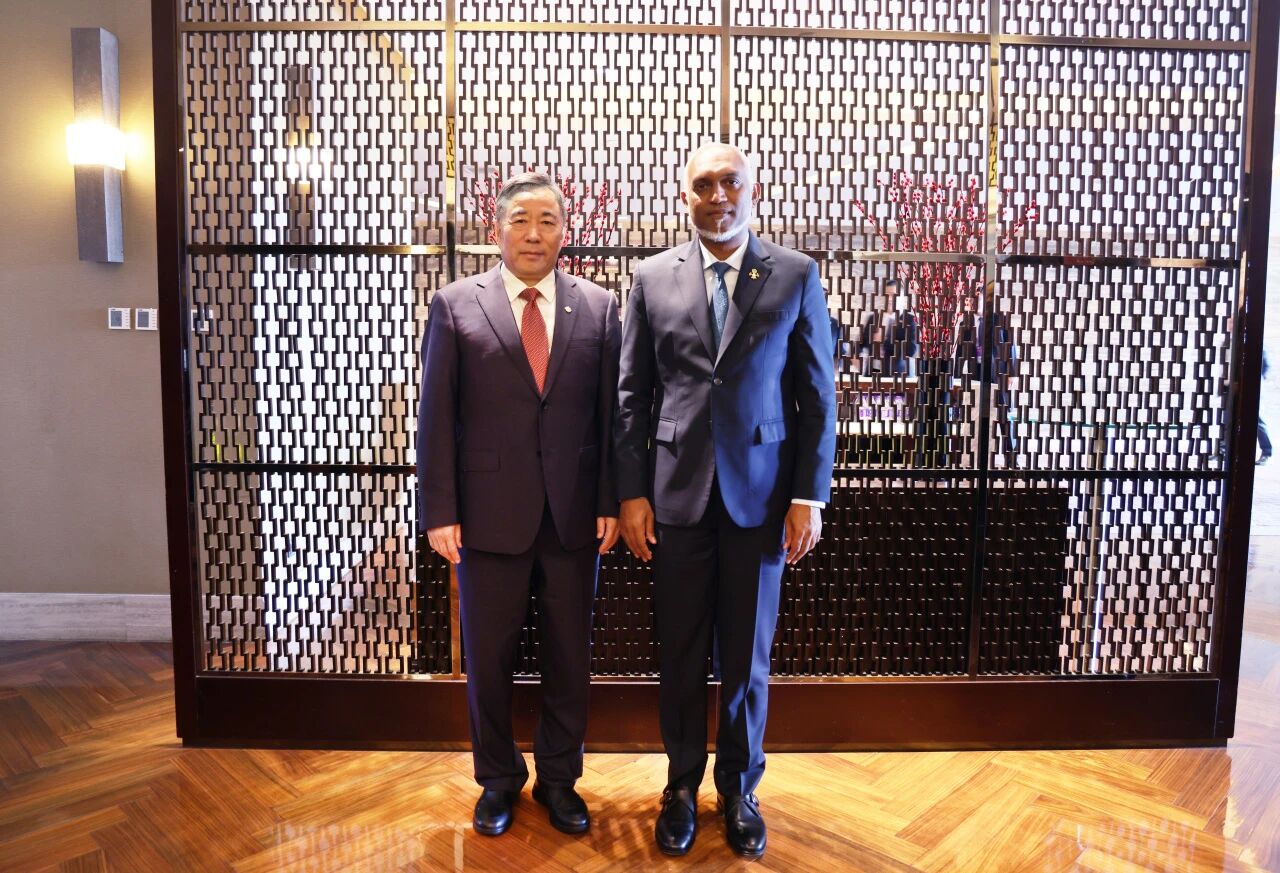董事长宋海良在北京拜会了来华出席上海合作组织峰会和纪念中国人民抗日战争暨世界反法西斯战争胜利80周年活动的马尔代夫总统穆伊兹。双方就积极落实两国元首达成重要共识、上海合作组织天津峰会成果,持续深化共建“一带一路”,加强在港口建设、数字经济、低空经济、城市开发与建设、桥梁建设与维保、农业经济园区开发、疏浚吹填等领域合作进行了深入交流,助力打造中马命运共同体。