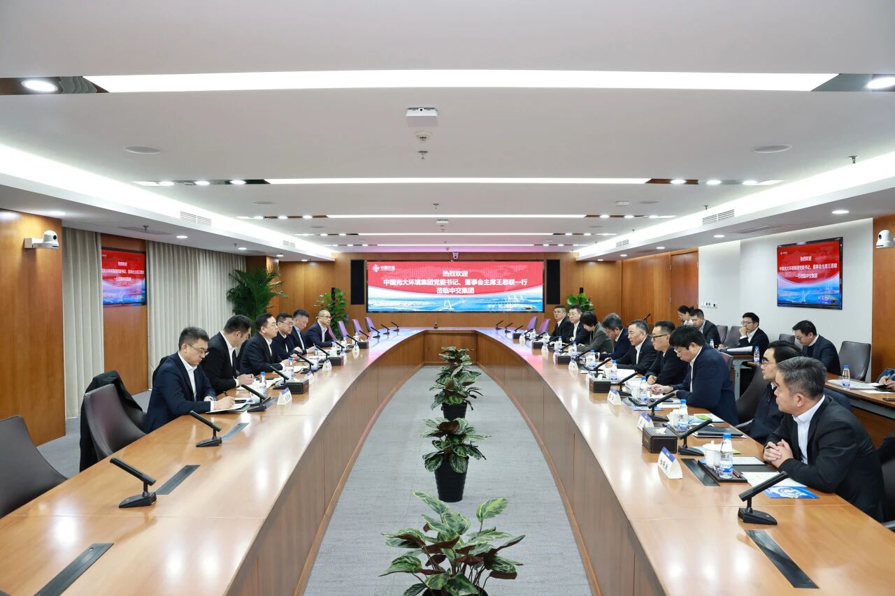 党委书记、董事长宋海良在中交大厦与来访的中国光大环境(集团)有限公司党委书记、董事会主席王思联举行会谈。双方围绕绿色发展、低碳环保、转型升级等领域加强合作,加快推进重大项目落地等进行深入交流。
