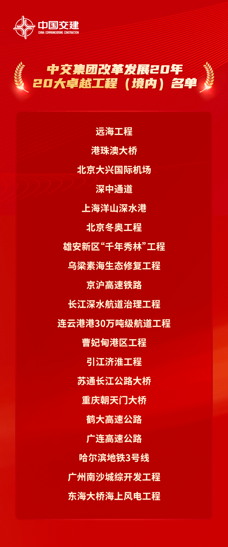 “中国建造•改革发展20年20大卓越工程(境内)”