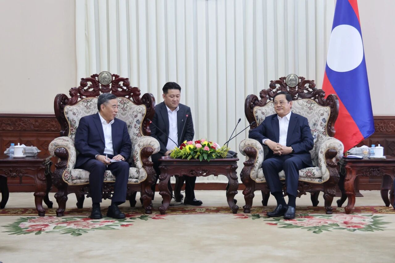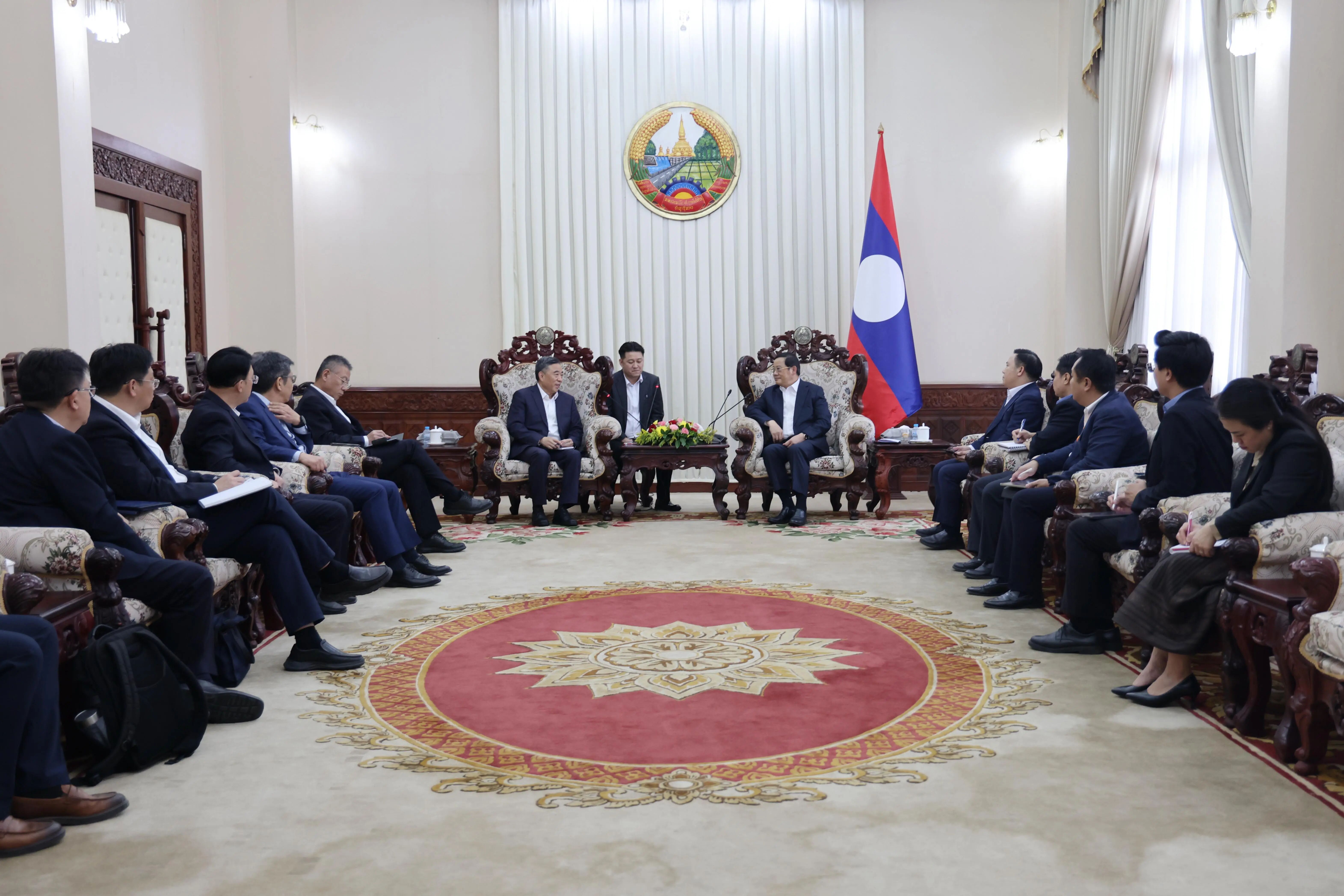 董事长宋海良在老挝首都万象与老挝总理宋赛·西潘敦举行会谈。双方围绕落实中老两国领导人重要共识,深化中老全面战略合作伙伴关系,推动老挝基础设施建设、城市更新、绿色发展、数智赋能等领域的务实合作进行深入交流。