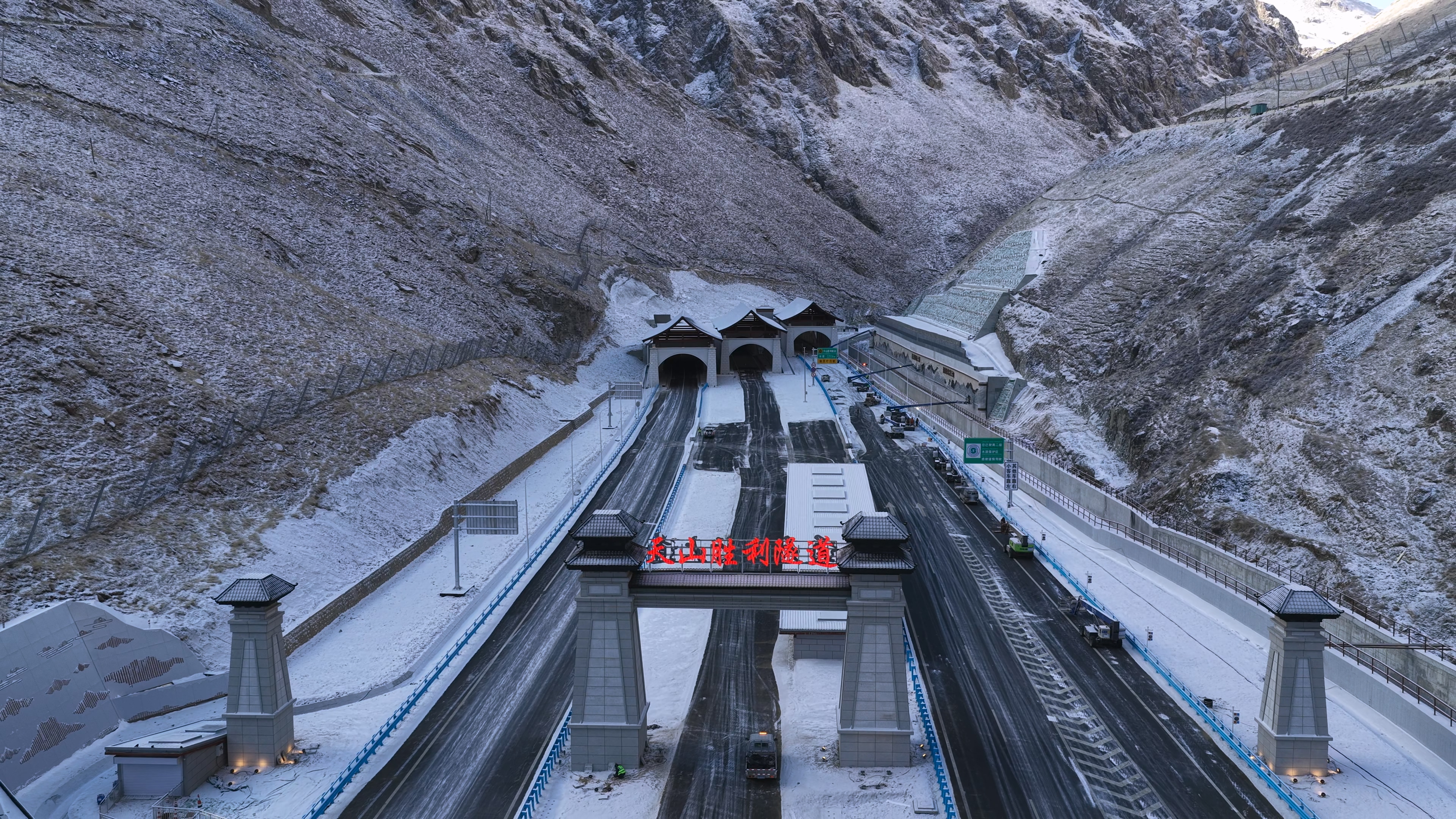 正式通车前,陈小江、艾尔肯·吐尼亚孜来到全长22.13公里的“世界最长高速公路隧道”天山胜利隧道中,实地察看隧道设计、内部结构等,详细了解项目建设、技术攻关、工程质量、安全环保等情况,并在隧道出口端,亲切看望慰问工程建设者代表,向全体参建单位和参建人员致以诚挚感谢和崇高敬意。陈小江说,五年多来,广大建设者们战严寒、斗酷暑,克服一系列施工困难,攻克一道道技术难题,以智慧和汗水打通南北疆天堑,优质高效完成建设任务,建成了一条便利群众通行、增进民生福祉的幸福路,加强南北疆经济联系、推进区域协调发展的致富路,促进各民族交往交流交融、铸牢中华民族共同体意识的同心路,必将有力促进新疆高质量发展。陈小江要求,要着力提升运营管理效能,优化沿线服务保障,推进服务区功能完善、品质提升,加强数字化智能化建设,强化交通安全监管,提升事故应急处置和防范应对极端恶劣天气能力,不断提升高效便捷、安全有序运行水平。元旦将至,陈小江、艾尔肯·吐尼亚孜祝大家新的一年工作顺利、身体健康、阖家幸福。