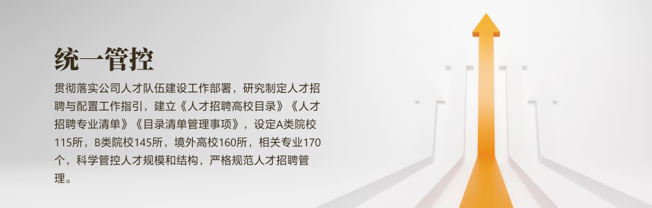 贯彻落实公司人才队伍建设工作部署,研究制定人才招聘与配置工作指引,建立《人才招聘高校目录》《人才招聘专业清单》《目录清单管理事项》,设定A类院校115所,B类院校145所,境外高校160所,相关专业170个,科学管控人才规模和结构,严格规范人才招聘管理。