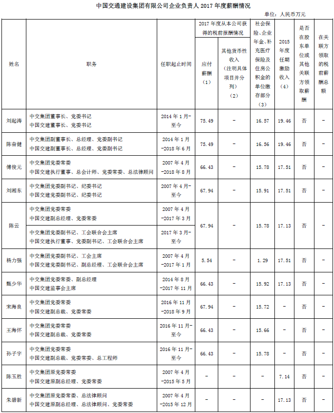 备注:1.上表披露信息为我公司企业负责人2017年度全部应发税前薪酬(不含2017年发放的以往年度薪酬)。其中,第(1)、(4)项由国务院国资委核定。
