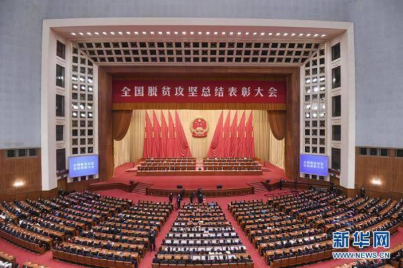 2021年2月25日,全国脱贫攻坚总结表彰大会在北京人民大会堂隆重举行。中共中央总书记、国家主席、中央军委主席习近平在大会上庄严宣告,经过全党全国各族人民共同努力,在迎来中国共产党成立一百周年的重要时刻,我国脱贫攻坚战取得了全面胜利,现行标准下9899万农村贫困人口全部脱贫,832个贫困县全部摘帽,12.8万个贫困村全部出列,区域性整体贫困得到解决,完成了消除绝对贫困的艰巨任务,创造了又一个彪炳史册的人间奇迹!这是中国人民的伟大光荣,是中国共产党的伟大光荣,是中华民族的伟大光荣!