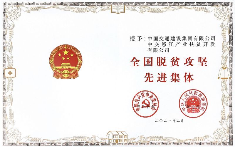专门组建了中交怒江产业扶贫开发公司,以怒江扶贫开发为主,兼顾区域市场经营,通过“政府+企业”、“计划+市场”、“长期+短期”帮扶怒江升级发展。在中交怒江公司努力下,属于“三区三州”深度贫困的云南省怒江州4个县市如期脱贫摘帽,26.96万贫困人口全部脱贫,贫困发生率从56.24%下降到0,249个贫困村全部出列,精准扶贫工作获得怒江人民和各级政府普遍赞誉,并被授予2020年怒江州脱贫攻坚奖“扶贫明星企业”荣誉称号。