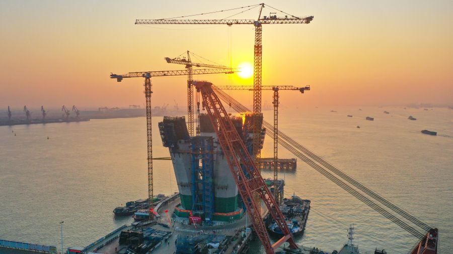 图3 一体化智能筑塔机应用于深中通道伶仃洋大桥