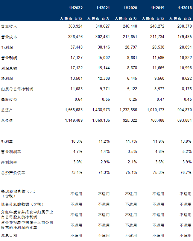 2022年中期财务亮点