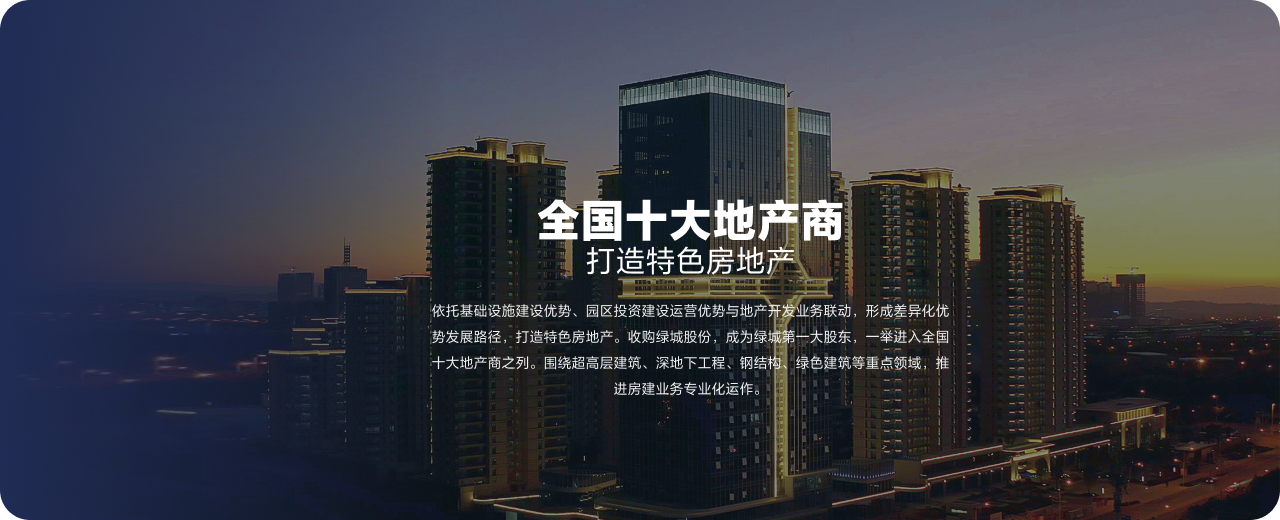 依托基础设施建设优势、园区投资建设运营优势与地产开发业务联动,形成差异化优势发展路径,打造特色房地产。收购绿城股份,成为绿城第一大股东,一举进入全国十大地产商之列。围绕超高层建筑、深地下工程、钢结构、绿色建筑等重点领域,推进房建业务专业化运作。