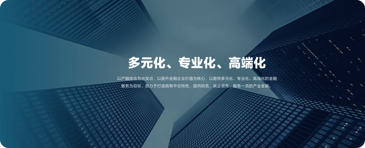 以产融结合为出发点,以提升金融企业价值为核心,以提供多元化、专业化、高端化的金融服务为目标,致力于打造具有中交特色,国内知名、央企领先、服务一流的产业金融。