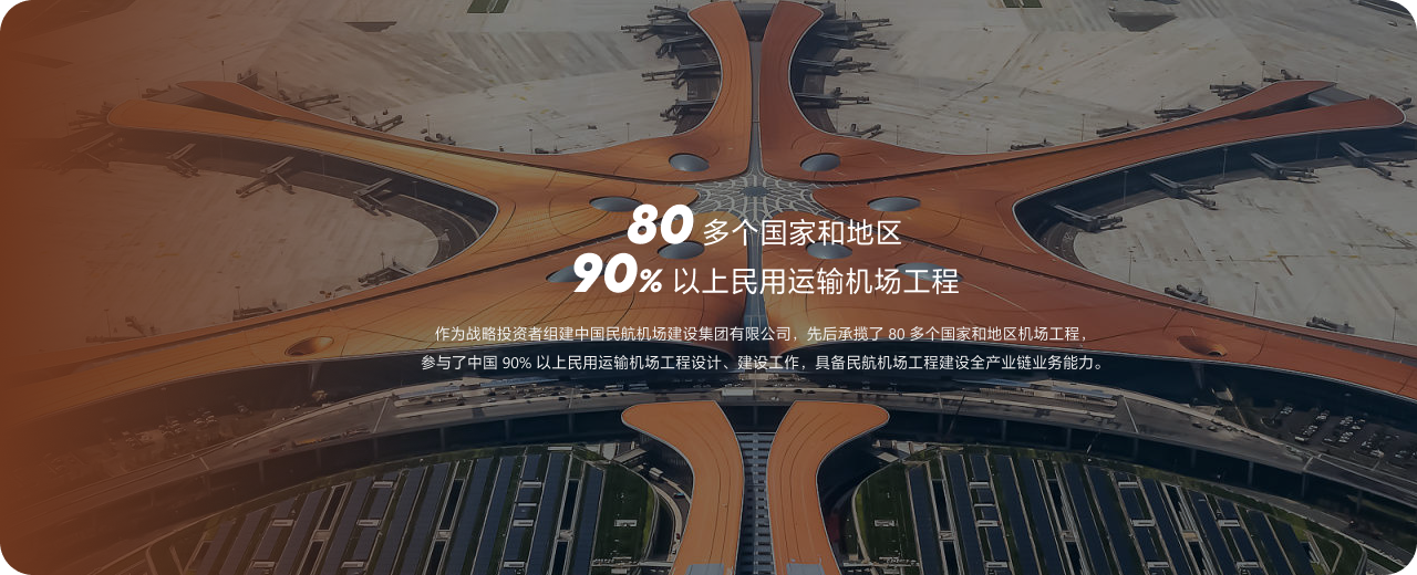 作为战略投资者组建中国民航机场建设集团有限公司,先后承揽了 80 多个国家和地区机场工程,参与了中国 90% 以上民用运输机场工程设计、建设工作,具备民航机场工程建设全产业链业务能力。