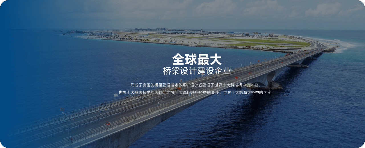 形成了完备的桥梁建设技术体系。设计或建设了世界十大斜拉桥中的 4 座,世界十大悬索桥中的 5 座,世界十大高山峡谷桥中的 8 座,世界十大跨海大桥中的7座。