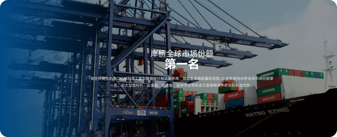 是世界领先的港口机械和海工重型装备设计制造服务商,岸边集装箱起重机连续 20 余年保持岸桥全球市场份额第一名。在大型盾构机、起重船、疏浚船、钻井平台等制造方面拥有技术研发和制造优势。