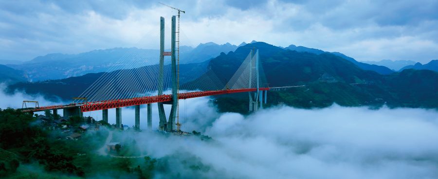 北盘江大桥是世界第一高桥,桥面距谷底高差达 565 米。