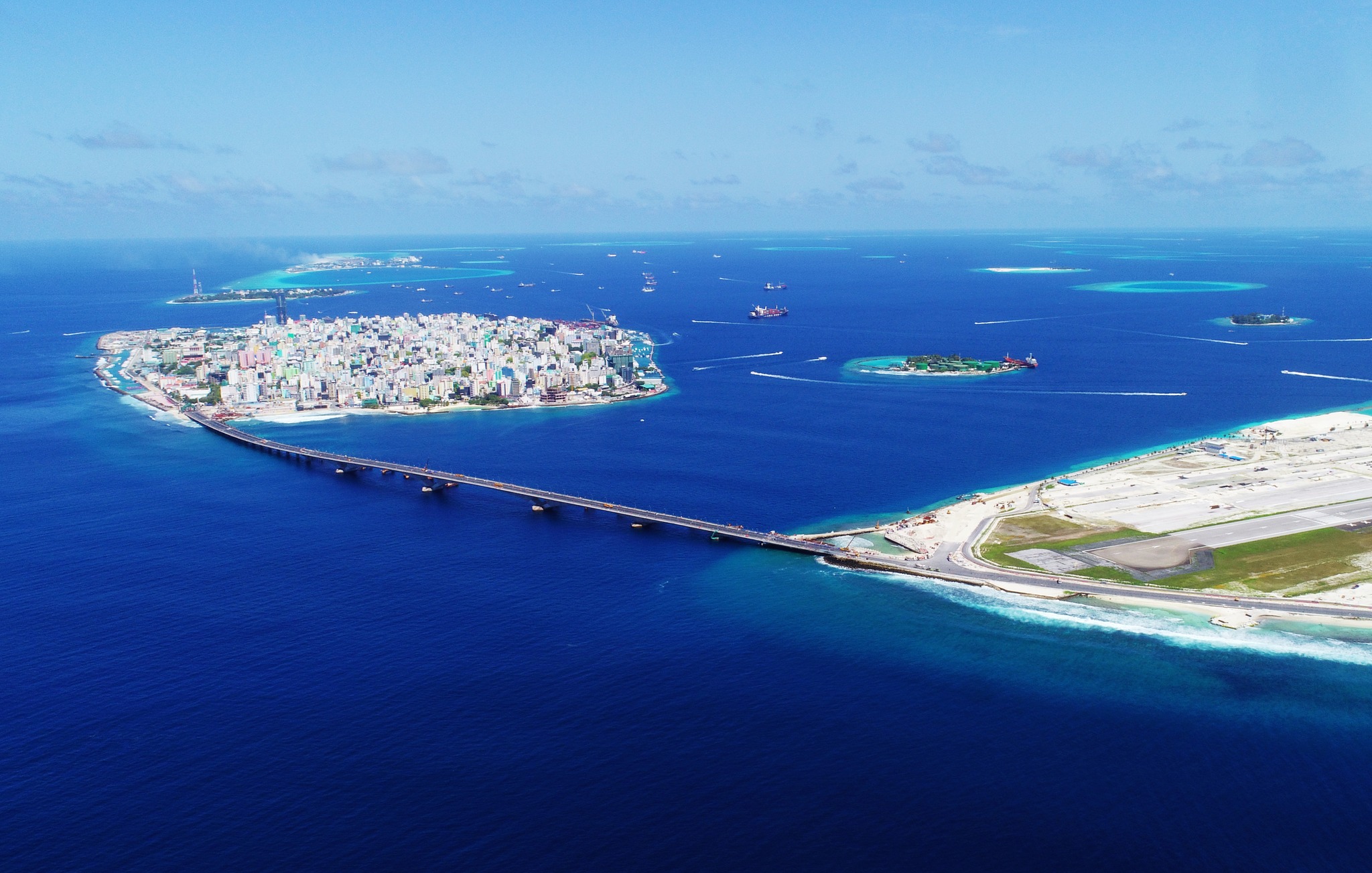 中马友谊大桥是中国援建的连接马尔代夫首都马累到机场岛的跨海大桥,全长2公里,双向4车道。2015年12月30日开工,2018年8月30日建成通车。
