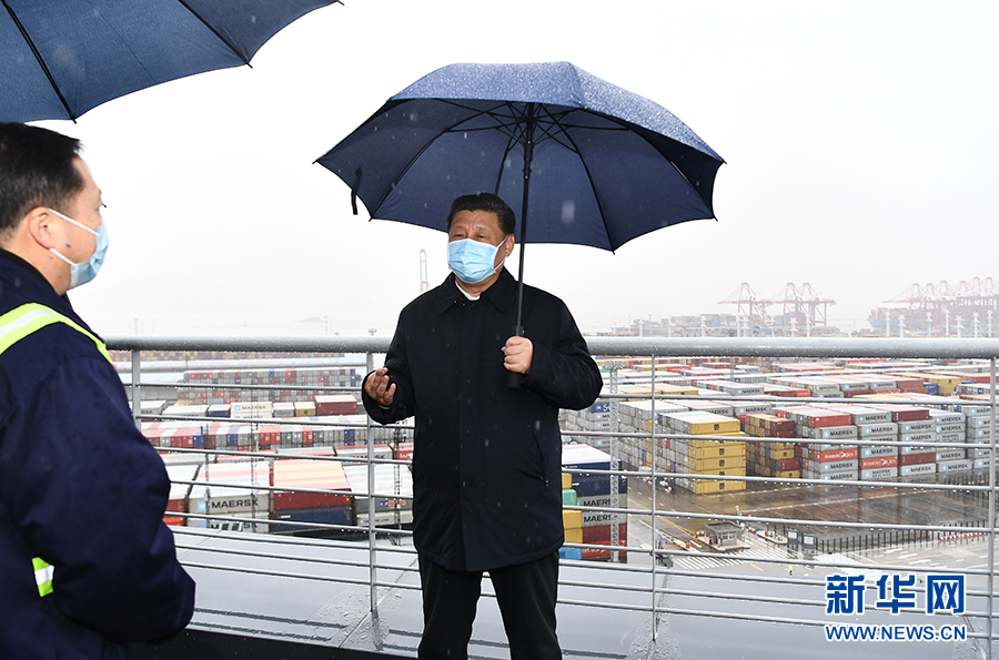 2020年3月29日,习近平总书记来到宁波舟山港穿山港区,就统筹推进疫情防控和经济社会发展进行调研。习近平总书记指出,宁波舟山港在共建“一带一路”、长江经济带发展、长三角一体化发展等国家战略中具有重要地位,是“硬核”力量,强调宁波舟山港要坚持一流标准,把港口建设好、管理好,努力打造世界一流强港,为国家发展作出更大贡献。