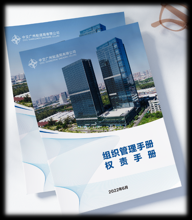 2022年,广航局先后编制发布了《组织管理手册》与《权责手册》。其中,组织管理手册主要用以说明公司的部门组织架构、部门定位描述、部门职能职责等内容,是公司组织管理的基本文件。权责手册主要用于理清部门之间的权责界面,清晰展示每个关键事项“谁发起、谁主责、谁配合、谁决策”,是本部管理事项权责分配的具体操作性文件。