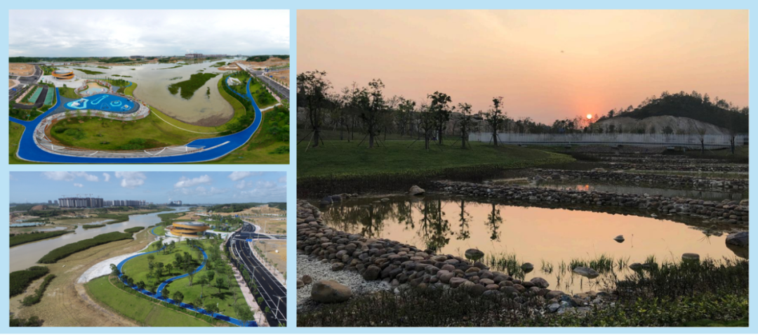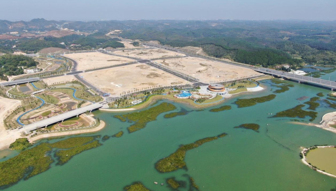 增绿于民,打造生态城市景观。金鼓江项目创新提出“双园双生、以园养园”设计建设理念,双园即城市公园与生态公园。城市公园吸引人流和交通,满足人的需求;生态公园是原生红树林的生态屏障,为城市公园提供景观基底和生态涵养。依城而建的城市公园营造了区域和邻里的两级公共生活,而依水而建的生态公园则构筑了原生与人工的双重自然生境。城市设计强调生态优先理念,在保护金鼓江及其支流沿岸的红树林的同时,中交城投进一步挖掘园区“中马”文化特色,用“大主题、小写意”的方法,打磨了“莲心逐梦”“水上足迹”“叠水花溪”等13个包含亲水城市景观广场、湿地公园、红树林科普馆等项目的城市配套设施。以景观式公园代替墙式护岸,构筑人与自然的平衡;用蓝色海洋为背景,以红树林资源为“画布”,勾勒出一幅人在城中,城在景中,人城境业相融共生的生态画卷。