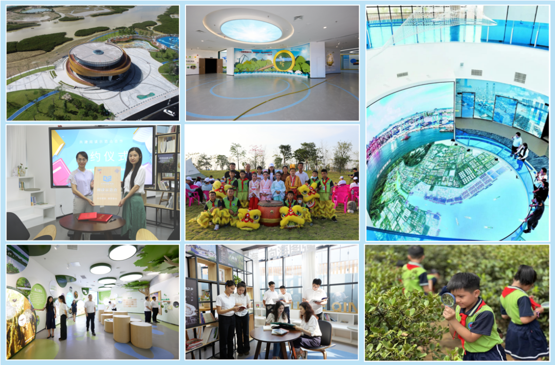 抱绿于民,营建生态职住空间。金鼓江片区承载着满足市民生活及工作的职住需求的功能定位。除了为人们提供教育、医疗、商业、休闲等生活配套之外,中交城投还为市民营造和活跃产业社区氛围打造了“城市看台”这一专属空间——一座集规划展示、会议接待、商务洽谈、产业交流及市民休闲于一体的多功能展示综合体。其地下一层,专门为蓝色海湾和红树林量身建设了面积约1500平方米的红树林科普展示和教育基地,并布展约800平方米的知识宣传展示面和互动平台,作为海洋和红树林研学一体化的独立科创空间,“走读广西·向海而兴”探秘红树林海洋科普研学、“我和红树林”科普讲解小志愿者选拔等30余场次公益科普、研学活动在这里举办,这里成为增强海洋环境保护意识的“网红讲堂”。