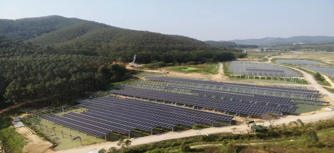 光伏发电助力乡村振兴。佛山陌上花开矿井花园一期32兆瓦和二期60兆瓦光伏项目总占地面积约 1860 亩,创新型设计新型大跨度、大空间支撑系统,将渔业养殖与光伏发电相结合,在鱼塘鱼类养殖水面上方架设光伏板阵列,形成“上可发电、下可养鱼”的模式。光伏板的设置不仅能够遮挡部分阳光,减少鱼类夏季高温缺氧,还能抑制藻类繁殖,给渔业养殖创造有利条件,产生1+1>2的效果,在改善当地能源结构的同时,助力乡村振兴,切实提升村民的获得感、幸福感。