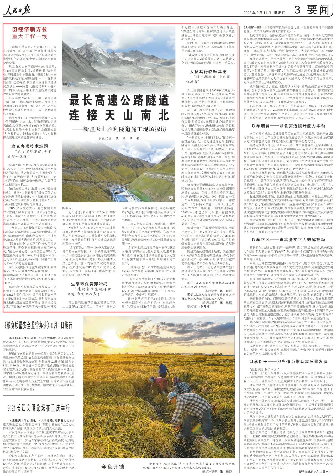 9月14日,《人民日报》“经济新方位·重大工程一线”栏目刊发题为《最长高速公路隧道连接天山南北——新疆天山胜利隧道施工现场探访》的报道,详细讲述中国三级片