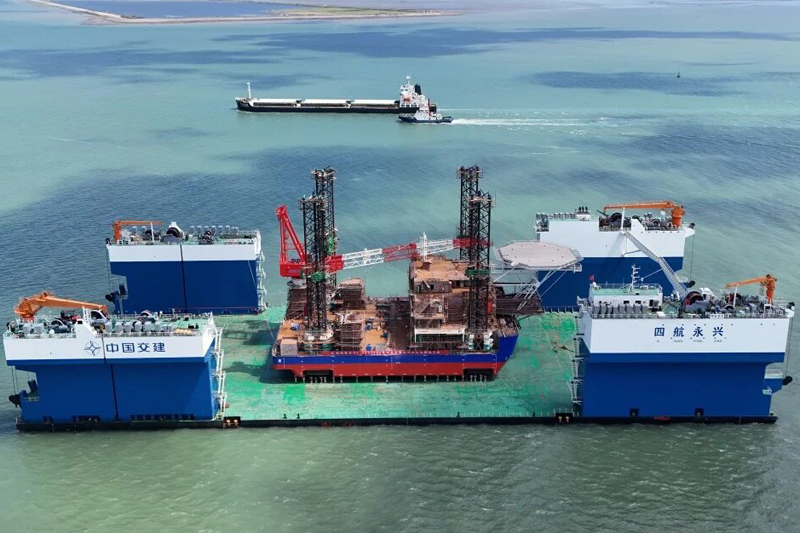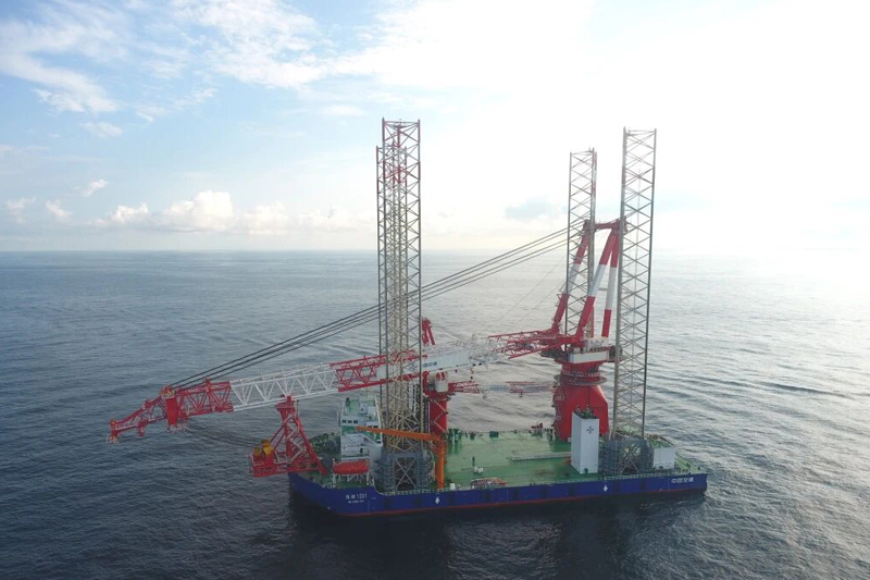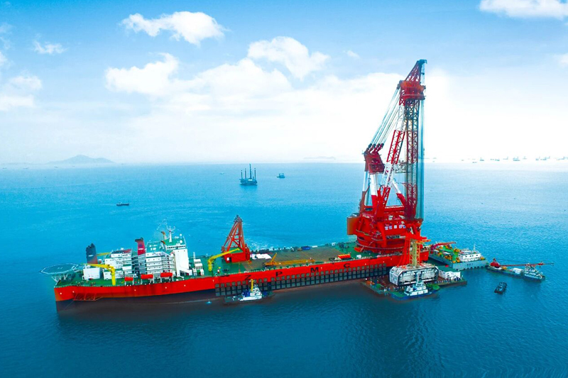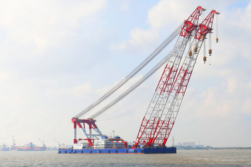 该船船长165米、型宽52米、型深11米,是国内最大5500吨双臂架变幅式起重船,配备8点锚泊定位系统,最大起升高度为水面以上120米。该船搭载自主设计的超大吨位双臂架系统,实现5500吨联合起重能力,具备精密同步控制、强结构刚度和抗风浪稳定性,成功打破超大型海上构件吊装的瓶颈,标志着我国在高端海洋工程装备研发制造领域实现了历史性跨越,并刷新了国内双臂架起重船的多项纪录,彰显了中国在超大型智能化海洋工程装备领域的综合实力和创新能力。