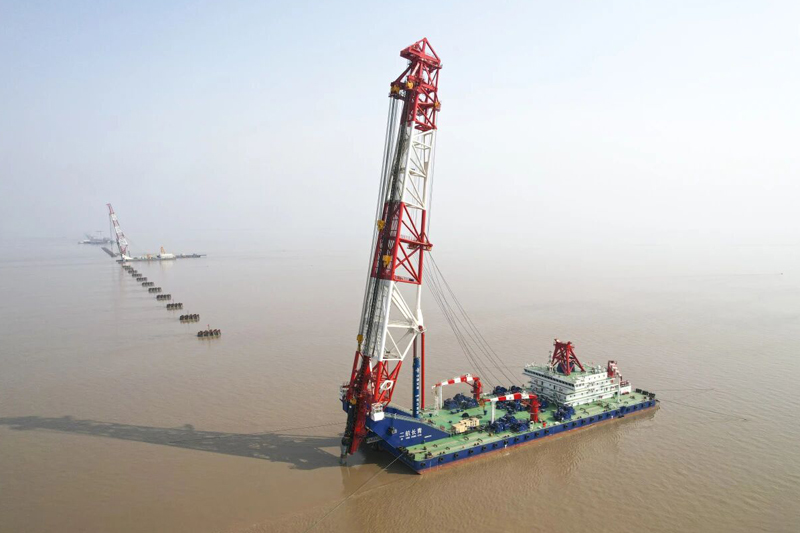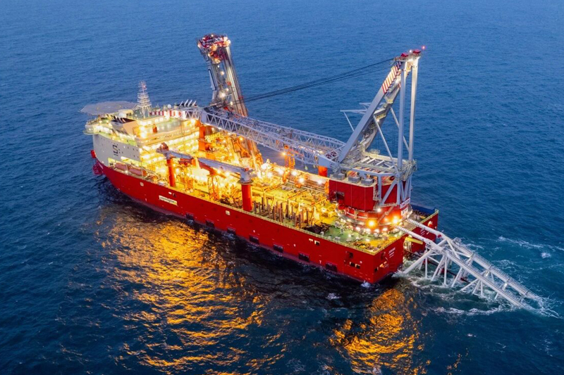 船长120米,型宽40.8米,型深8.4米,配备150米可变高度桩架系统,最大打桩长度达125米+水深,最大桩径7米,最大桩重700吨。该船搭载了自主研发的世界最大打桩船油缸,实现了超大超长油缸的国产化替代。它不仅刷新了世界最大固定臂架打桩船和世界最大船用变幅油缸两项纪录,更展现了中国在高端装备制造领域的强大实力和创新能力,为全球海洋工程装备的智能化与绿色化发展树立了新标杆。
