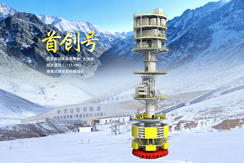 刀盘开挖直径最大可达14米,可满足最大钻进深度1000米、一次成孔直径14米的工程需要,钻进速度可达每分钟20毫米;具备高精度垂直导向与智能钻进系统。整机装机功率4500千瓦,整机高度44米,整机重量达1350吨。该竖向掘进机实现了硬岩地层大直径竖井一钻成井,核心元器件均实现国产化,填补了超大超深竖井掘进机空白,整机技术达到国际先进水平。