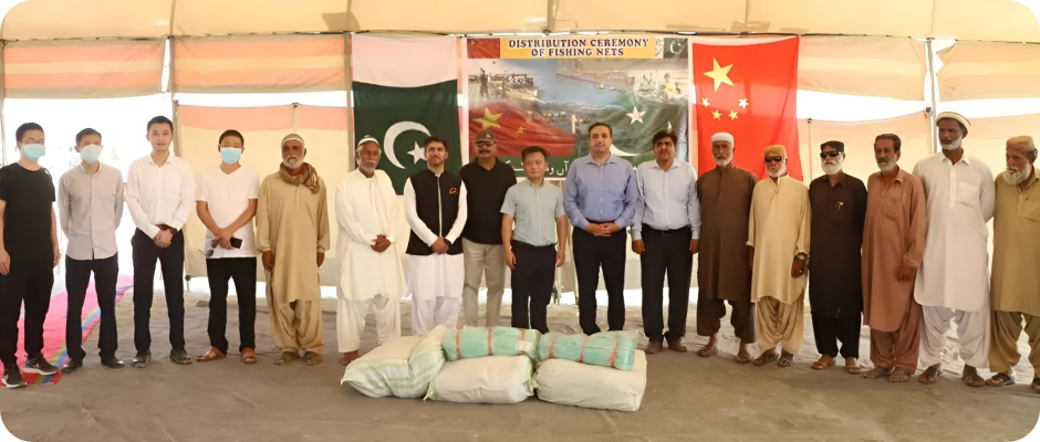 瓜达尔东湾快速路项目部向瓜达尔当地渔民捐赠587套渔网,为当地近200户贫困家庭改善“出海捕鱼”这一赖以生存的谋生渠道。
